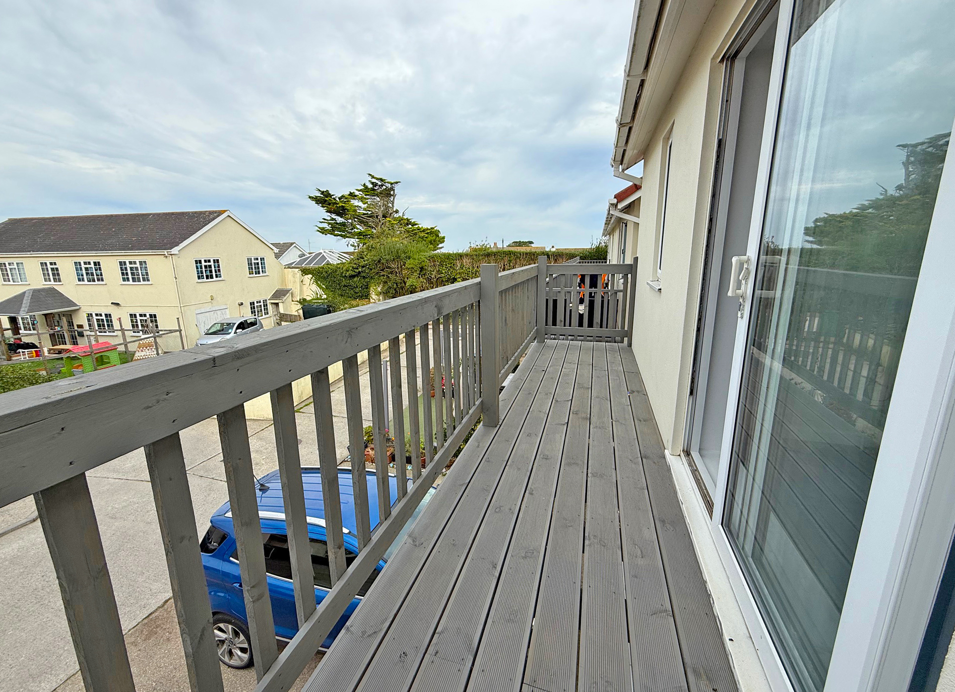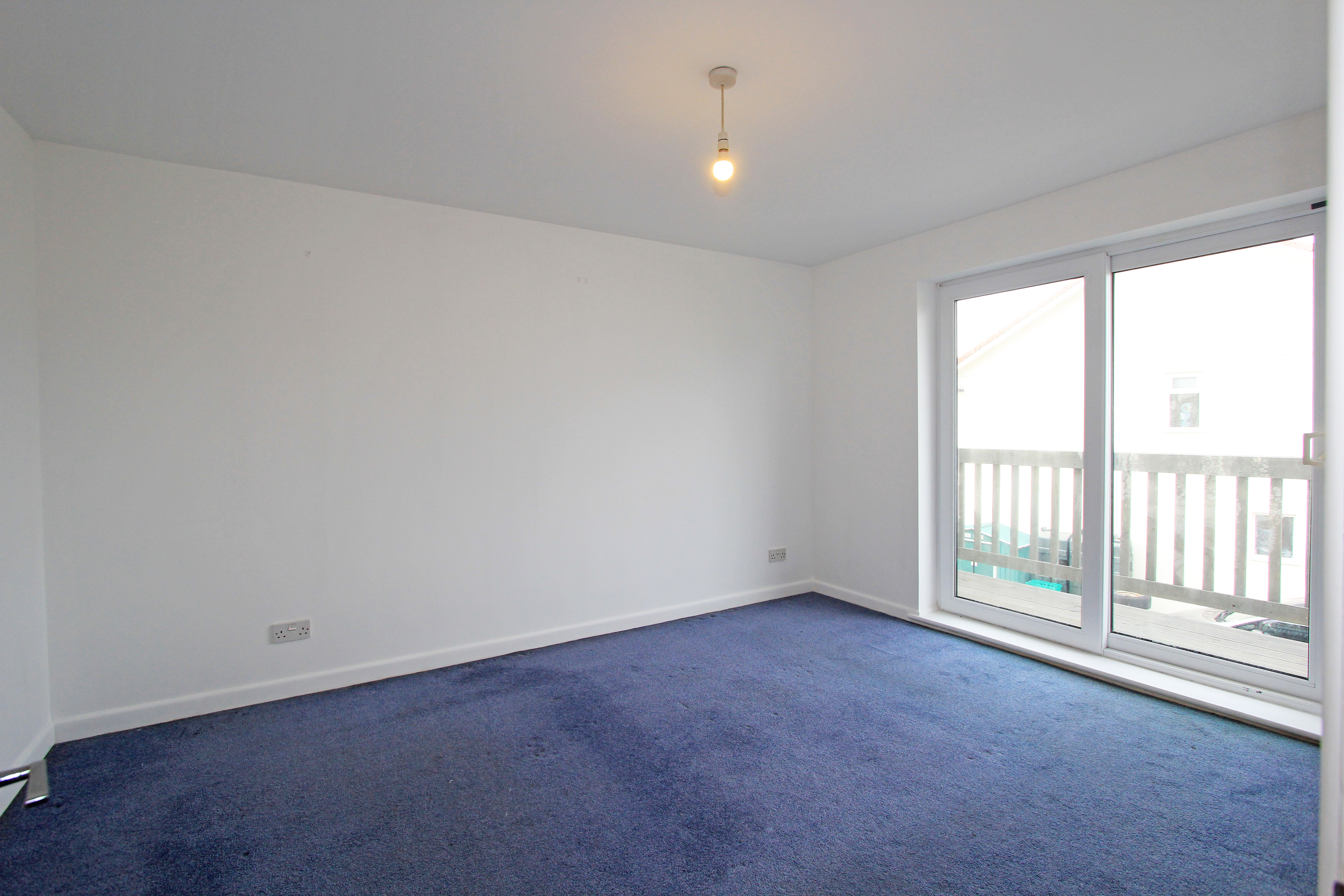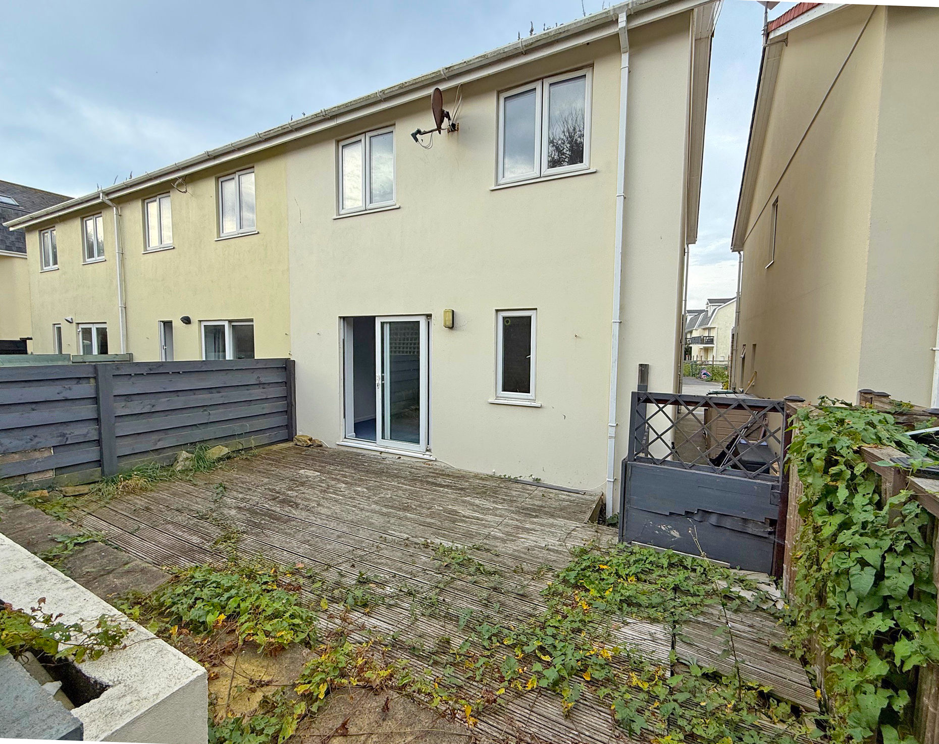 The ground floor comprises entrance hall leading to a fitted kitchen and a utility room. To the rear, a large living room spans the width of the house, with doors opening onto the garden. Upstairs, the principal bedroom enjoys a private balcony. There are two further bedrooms and a family bathroom completing the first floor.