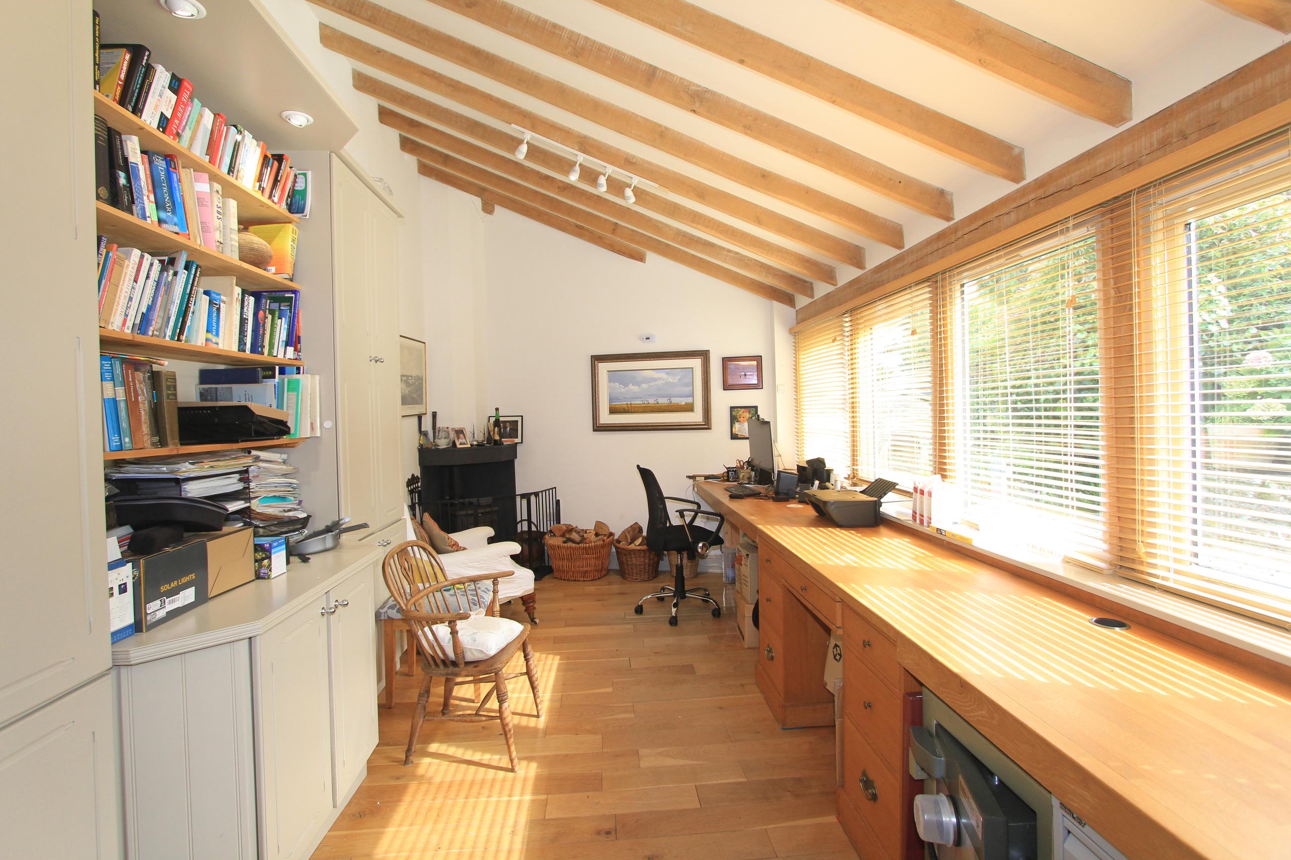 For those working from home, a separate office building provides an excellent workspace, complete with its own cloakroom. A utility room with a secondary kitchen area opens directly to the garage for added convenience.